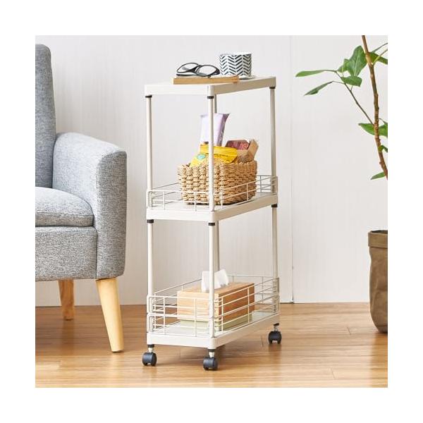 ドウシシャ サイドテーブル キッチンワゴン ランドリーワゴン キャスター付き スリム 灰 グレー 3段 幅20cm×奥行45cm×高さ74.5c