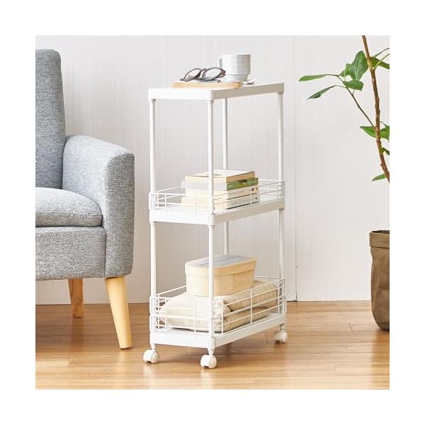 ドウシシャ サイドテーブル キッチンワゴン ランドリーワゴン キャスター付き スリム 白 ホワイト 3段 幅20cm×奥行45cm×高さ74.5