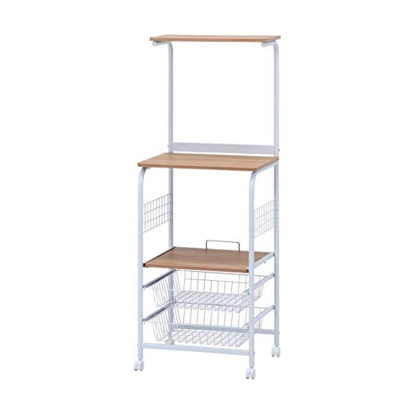 不二貿易 レンジ台 キッチンラック 幅51.5×奥行41×高さ140.5cm ホワイト ナチュラル スライド棚 収納 レンジワゴン キャスター付