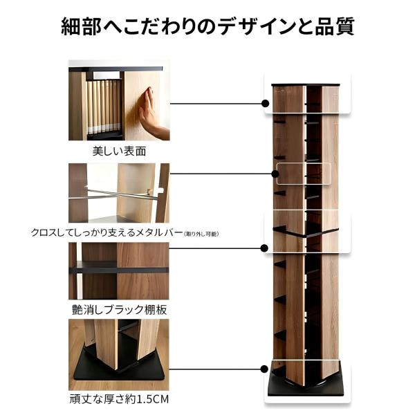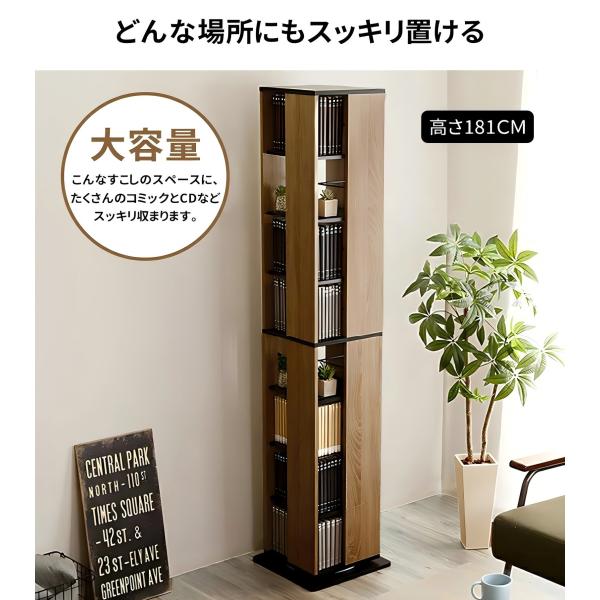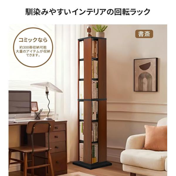 NADLE 本棚 回転式 木製 6 8段 360度 コミックラック おしゃれ 大容量 スリム 回転式本棚 回転 省スペース CD DVD 漫画ラック コミック 子供部屋 書斎 リビング