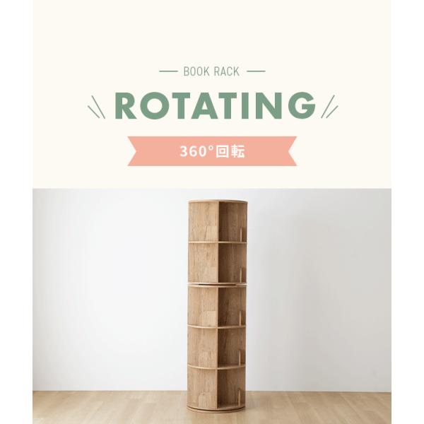 絵本棚 回転本棚 本棚 絵本ラック 5段 子供用 絵本 ラック 収納棚 棚 回転ラック 木目 収納ラック ディスプレイ 大容量収納 シンプル 省スペース