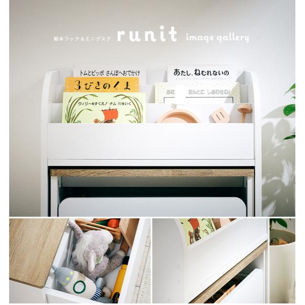 3点セット 絵本ラック ミニデスク おもちゃ収納 絵本棚 リビングラック 本棚 キッズデスク 収納 コンパクト 絵本ラック&ミニデスク runit(ルニト) 3色対応