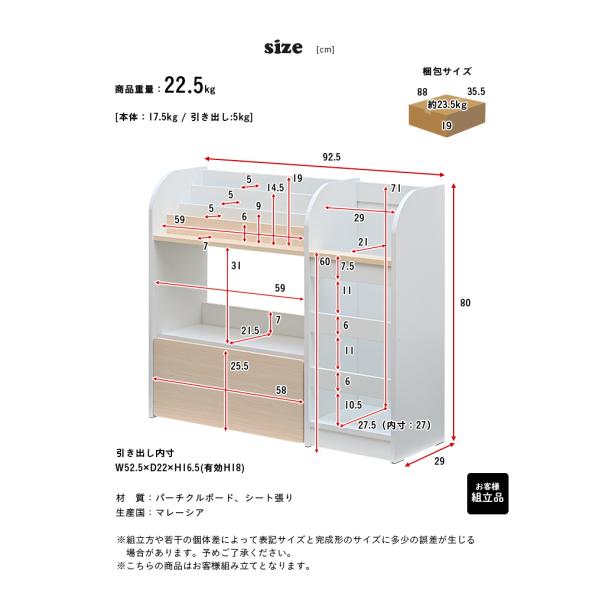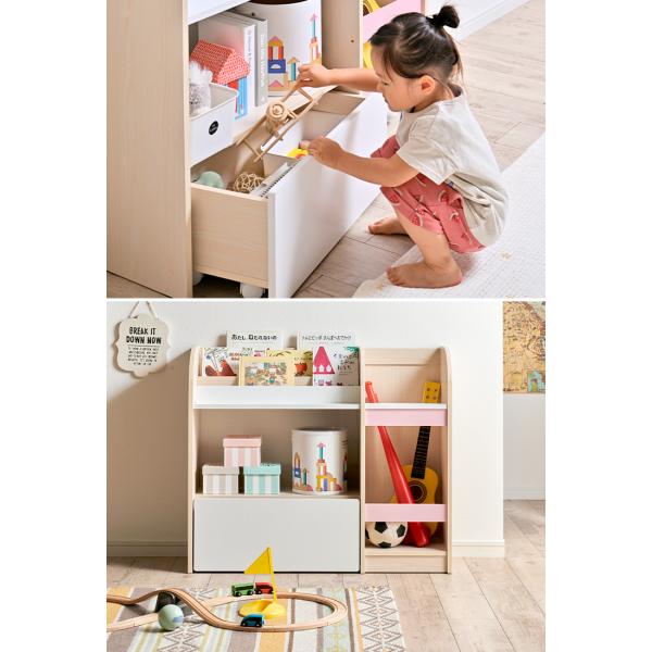 絵本ラック 絵本棚 おもちゃ収納 おもちゃ箱 玩具箱 本棚 ブックラック ブックシェルフ キッズラック 収納家具 木製 おしゃれ Tiddy(ティディ) 幅92cm 3色対応
