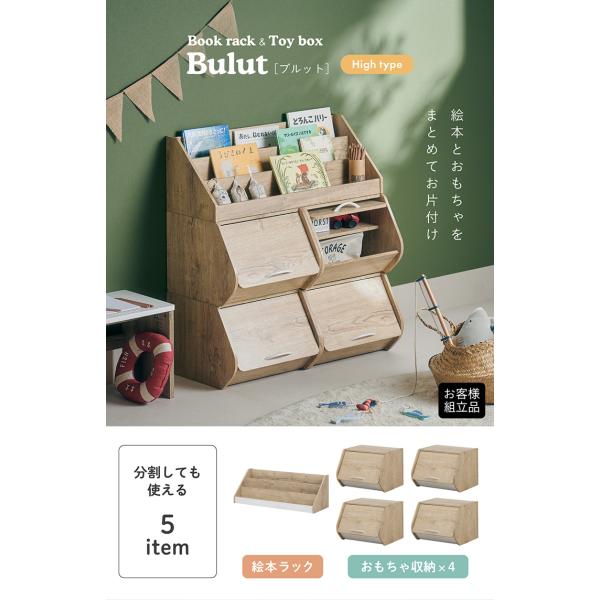 ブックラック 絵本棚 本棚 キッズラック おもちゃ箱 子供部屋 ハイタイプ 子供 子ども シンプル 幅80cm 絵本ラック&おもちゃ収納 Bulut(ブルット) 3色対応