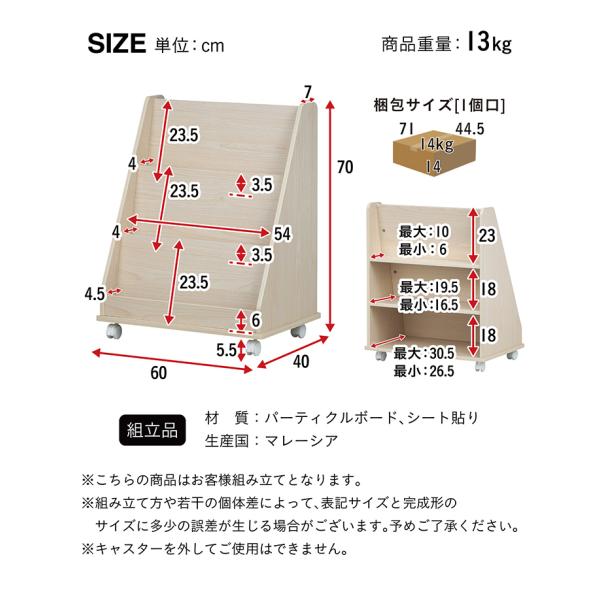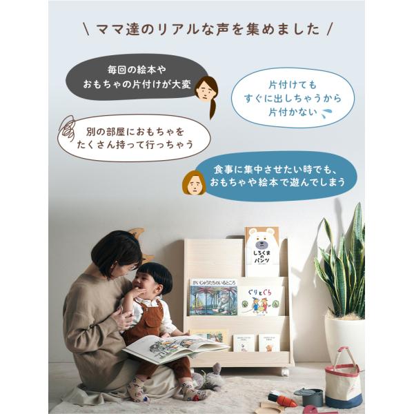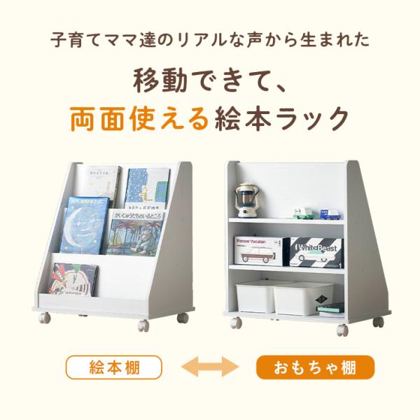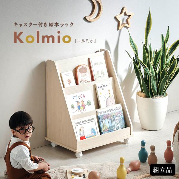 絵本ラック 絵本棚 幅60cm キャスター付き 本棚 ブックラック ブックシェルフ キッズラック おもちゃ収納 棚 木製 おしゃれ 子供部屋 Kolmio(コルミオ) 2色対応