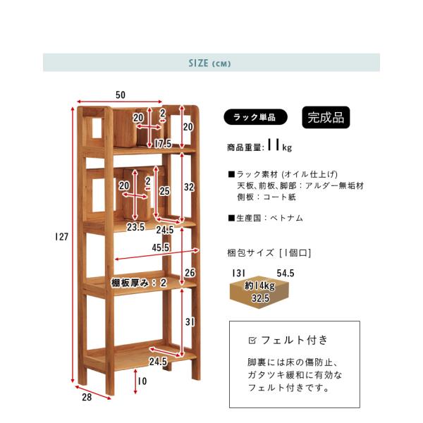 完成品 本棚 ブックラック 可動棚 本棚シェルフ シェルフ ランドセルラック ディスプレイ棚 木製 アルダー 収納棚 子供部屋 ERIS KIDS(エリスキッズ) 50 RACK NA