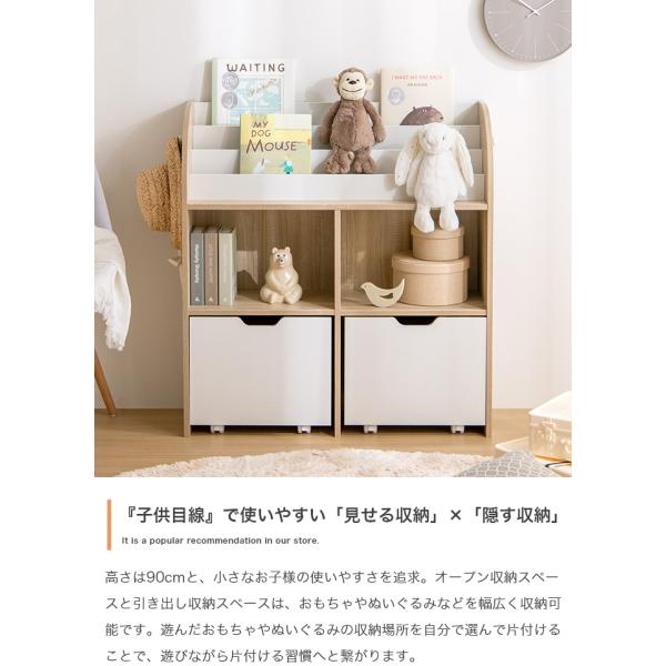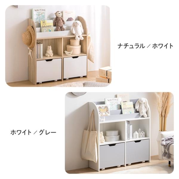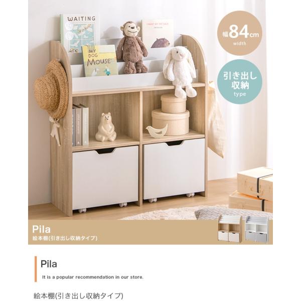 絵本ラック おもちゃ収納 おもちゃ箱 ロータイプ 本棚 ブックラック コンパクト 収納 お片付け おしゃれ 子供部屋 幅84cm 引出し収納 絵本棚 Pila(ピラ) 2色対応