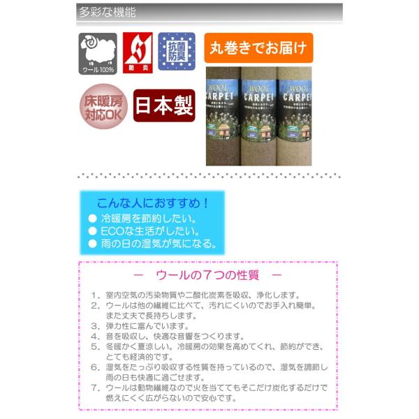 カーペット 3畳 ウール100% 高密度 天然素材ウールカーペット 江戸間3畳(176×261cm) 日本製 防炎カーペット ウール 防炎 3000 O02