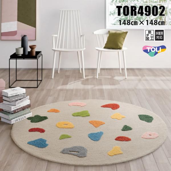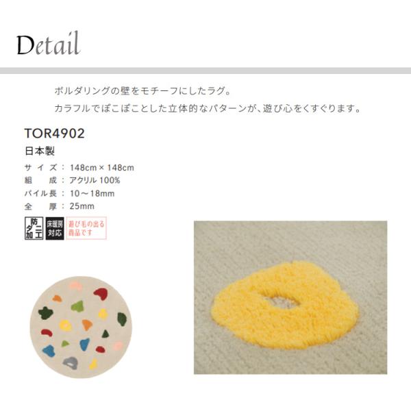東リ ラグ TOR4902 148cm×148cm ボルダリングの壁をモチーフにしたラグ。カラフルでぽこぽことした立体的なパターンが、遊び心をくすぐります。