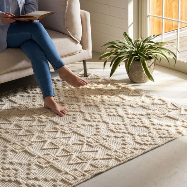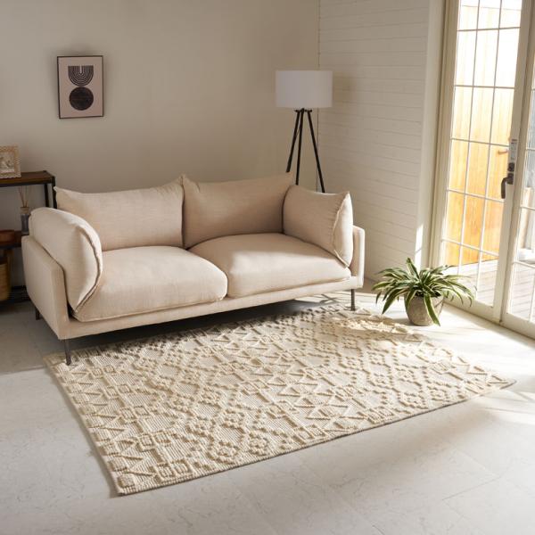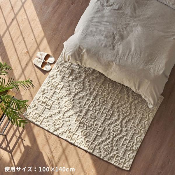 ラグ マット コットン ウール 140 × 200cm 約 1.5畳 オールシーズン 春 夏 秋 冬 吸湿 速乾 保温 絨毯 敷物 幅200 おしゃれ 北欧 モロッカン 西海岸風 34596