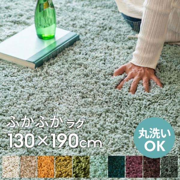 洗える ラグ シャギーラグ ラグマット カーペット 130×190cm マイクロファイバー 長方形 滑り止め 絨毯 ウォッシャブル 床暖房対応 滑り止め付き a100-130x190