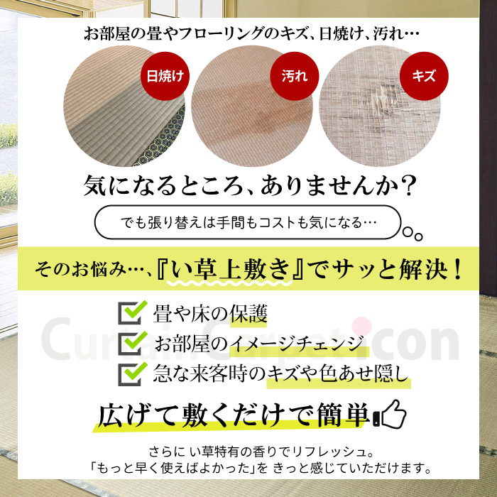 い草 カーペット 江戸間 6畳 261×352cm い草ラグ ござ 上敷き オーダー 防炎 敷物 マット 無地 / 萩