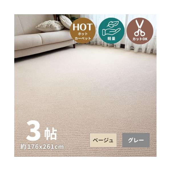 切れるカーペット ラグ カーペット 176×261 3帖 3畳 江戸間 平織り 不織布 グレー ベージュ 正方形 切れる 軽量 敷詰カーペット 折り畳み フリーカット 切れる