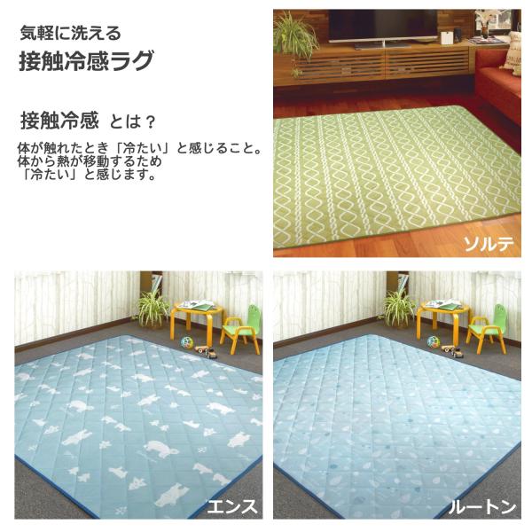 冷感ラグ 3畳 180×230cm (キルトタイプ) 夏用 接触冷感 キルト ブルー グリーン 洗濯可 洗える ひんやり 安い 接着剤不使用 夏ラグ ラグ ラグマット