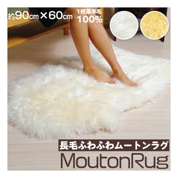 ムートンラグ 長毛 1枚皮 羊毛100% ムートンブラシ付き 約90cm×60cm オーストラリア産 ムートン ラグ 天然ムートン