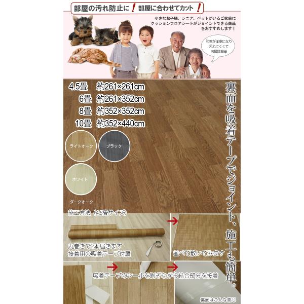 防水 カーペット ジョイント CF カーペット2 DIY 和室から洋室 江戸間 6畳 6帖 約261x352cm 1.8mm厚 撥水 木目 クッションフロア 六畳 六帖 防炎 賃貸 DIY (SL)
