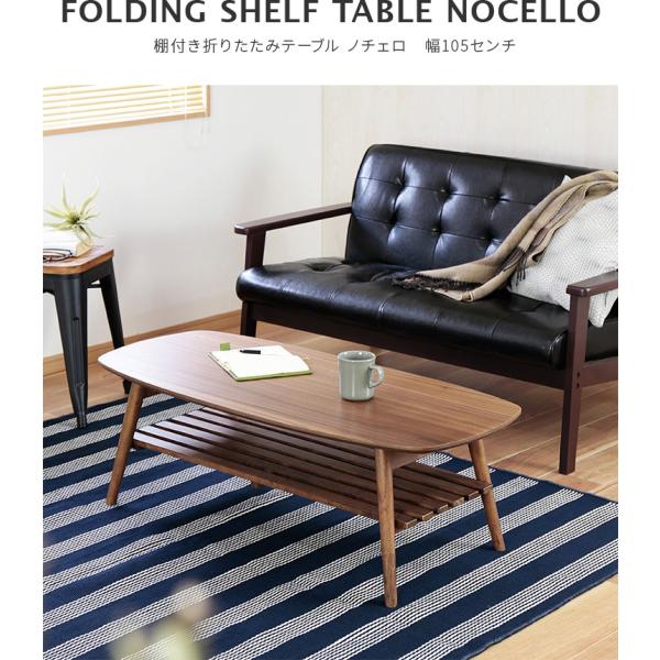 折りたたみテーブル 棚付き 幅105cm ローテーブル シンプル 北欧 リビングテーブル センターテーブル 机 テーブル 折りたたみ 木製 天然木 ノチェロ NOCELLO
