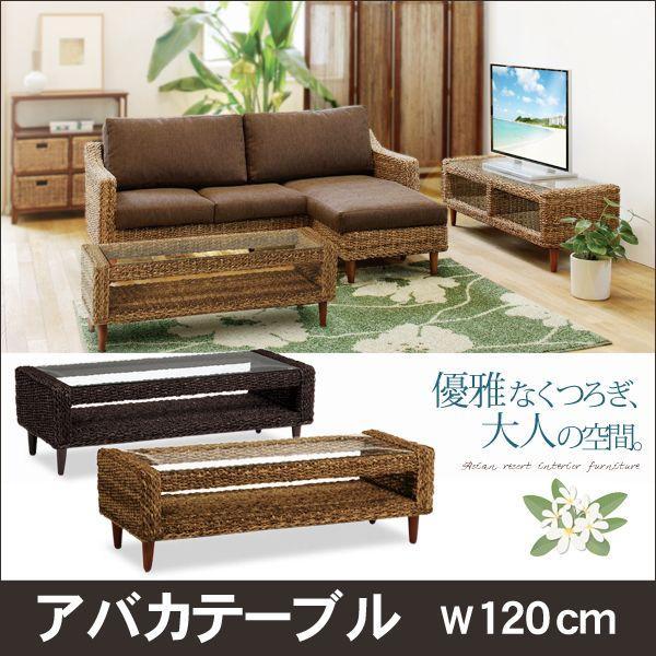 ガラステーブル 幅120 ローテーブル おしゃれ リビングテーブル アジアン家具 エスニック センターテーブル アバカ