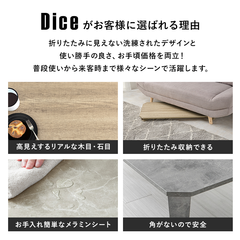 折りたたみテーブル テーブル 折りたたみ おしゃれ ローテーブル センターテーブル サイドテーブル リビングテーブル 小さい 軽量 机 幅120cm Dice ダイス