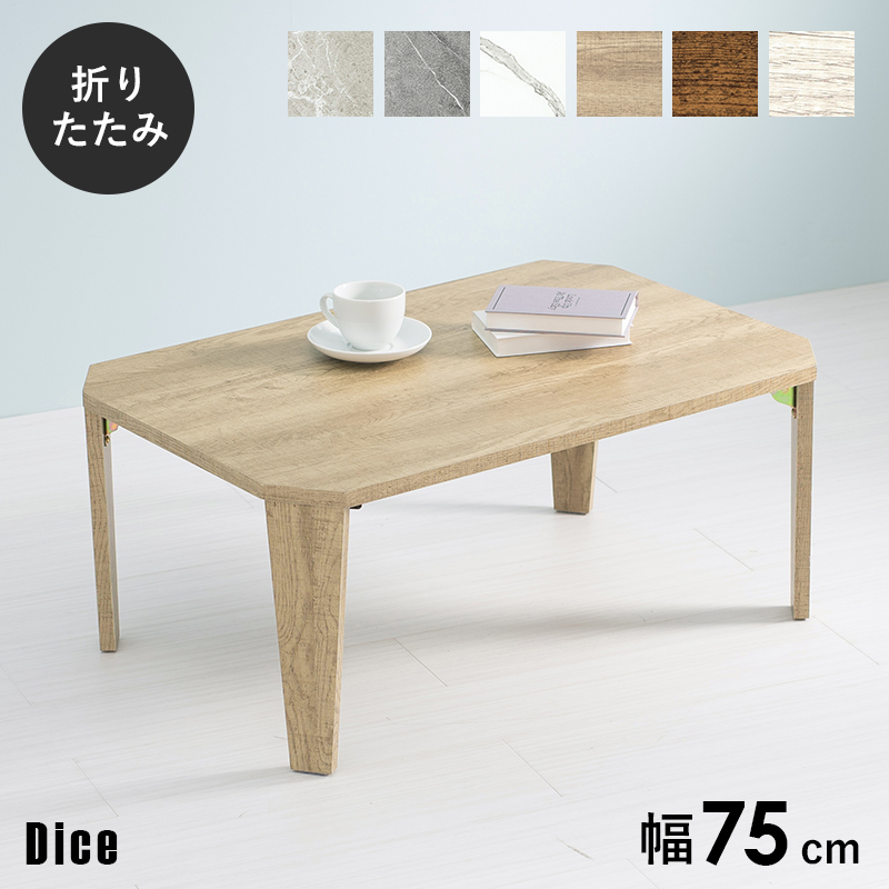 折りたたみテーブル テーブル 折りたたみ おしゃれ ローテーブル センターテーブル サイドテーブル リビングテーブル 小さい 軽量 机 幅75cm Dice ダイス