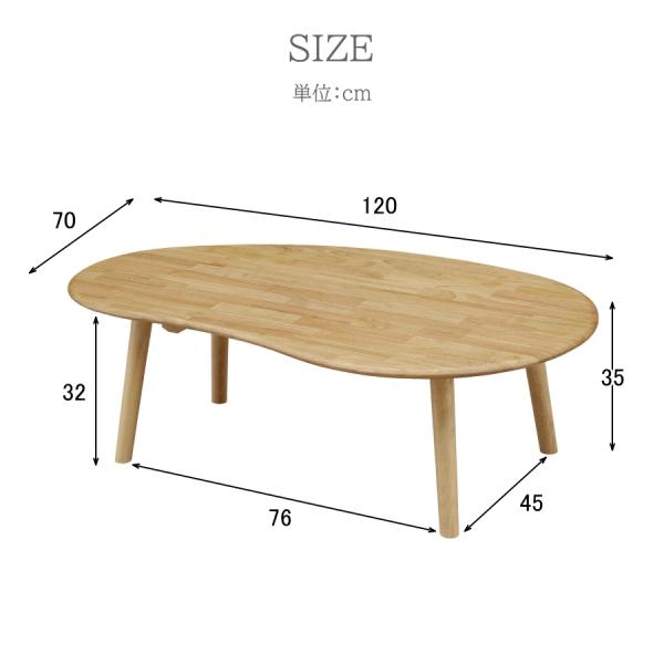テーブル ローテーブル センターテーブル リビングテーブル カフェテーブル ビーンズ 変形 無垢 ラバーウッド 木製 おしゃれ 豆型 ウッドテーブル 幅120cm H35cm