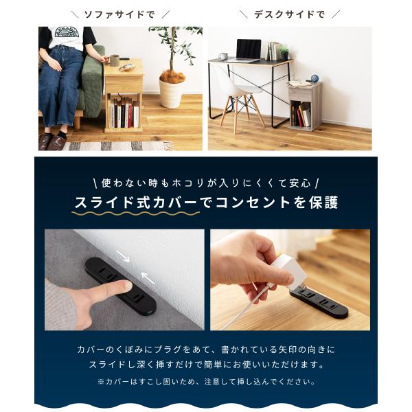 サイドテーブル ベッドサイドテーブル ナイトテーブル スリム ベッドテーブル ソファーテーブル テーブル 収納 コンセント ブラウン グレー ナチュラル