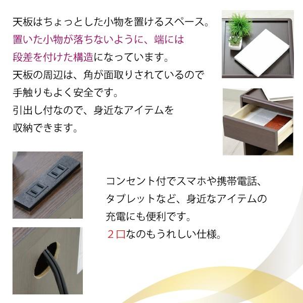 ナイトテーブル サイドテーブル ベッド サイドチェスト 幅30cm スリム 天然木 引出し 2口 コンセント付き おしゃれ 木目調 介護 MFB-NT 落下防止 完成品