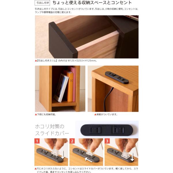 「木製 ナイトテーブル」 寝室 収納 引き出し コンセント 組立不要 完成品 サイドテーブル 石崎家具