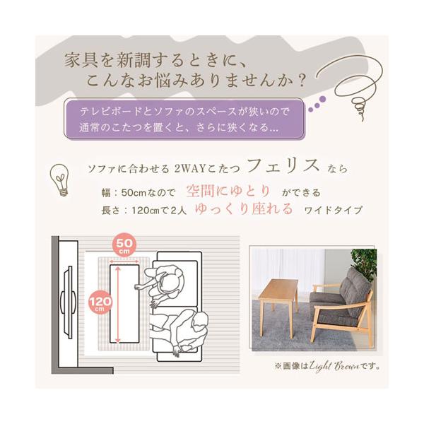 ユアサプライムス ソファ前こたつ 2way ブラウン フェリス120E(BR) 本体サイズ:(約)幅120×奥50×高42cm(ブラウン)