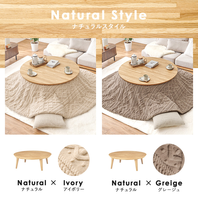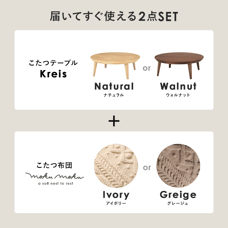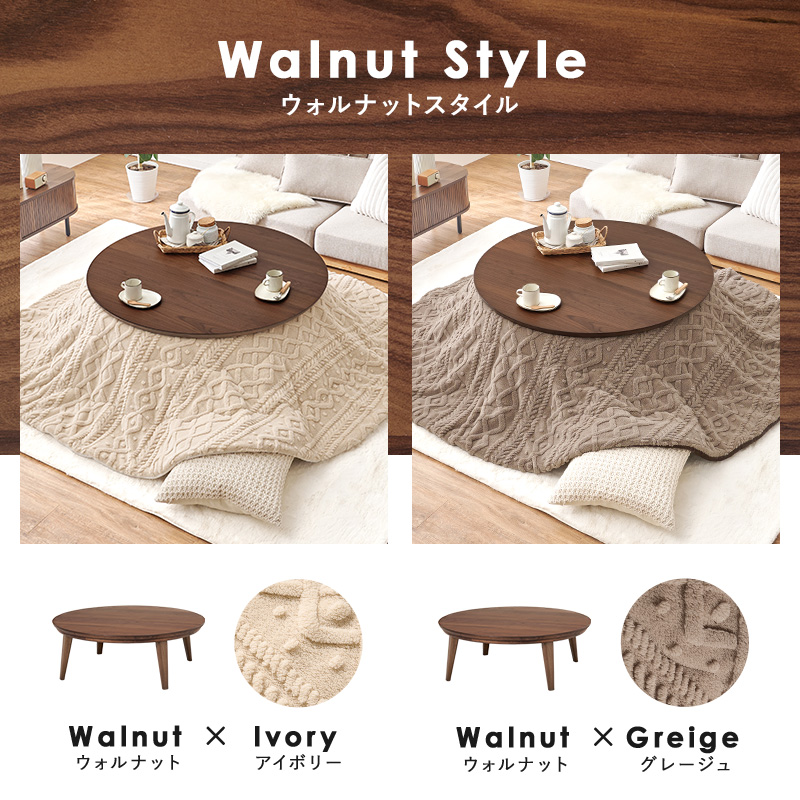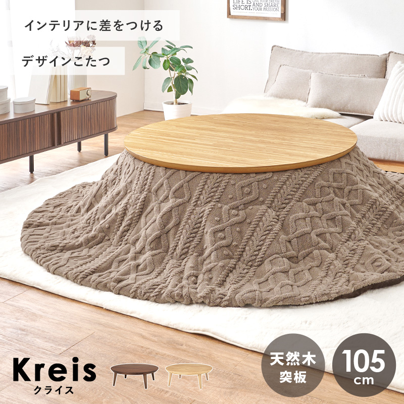 こたつ こたつテーブル こたつセット 直径105cm こたつ布団セット 円形 おしゃれ ナチュラル 円卓 丸い 北欧 省エネ 木目 ウォルナット クライス モクモク