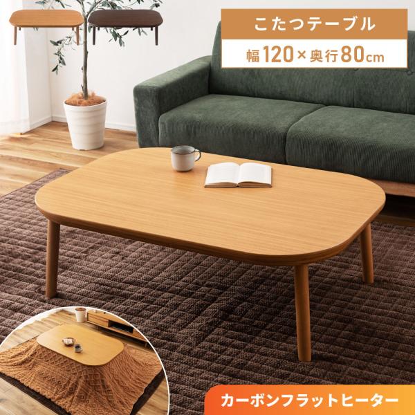 こたつテーブル おしゃれ 丸脚 幅120 長方形 ナチュラル 木目 木製 天然木 ローテーブル シンプル モダン 北欧 おしゃれ 座卓 一人暮らし 温度調節 角丸