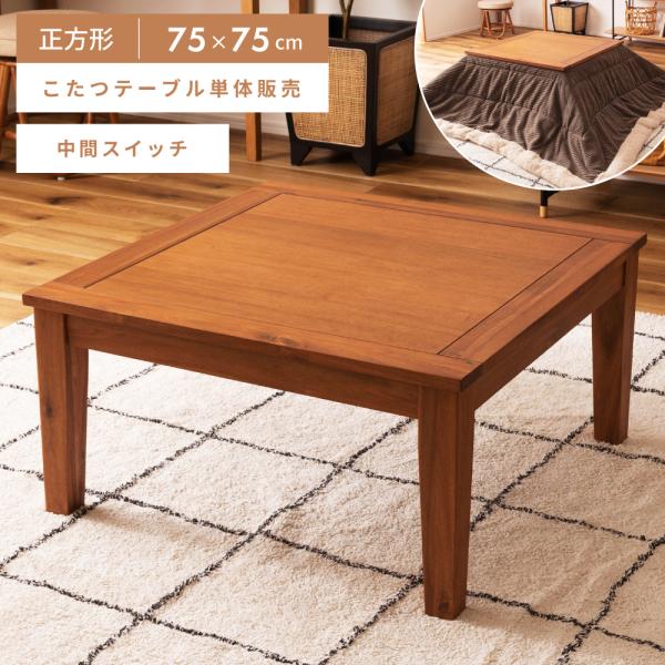 こたつ テーブル 正方形 75 こたつ おしゃれ コタツ アカシア コンパクト 一人用 石英管 ファン ヒーター オールシーズン センターテーブル ブラウン レトロ