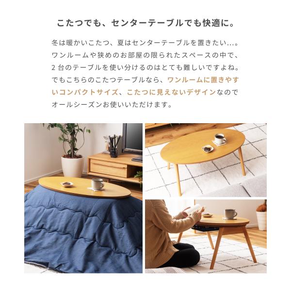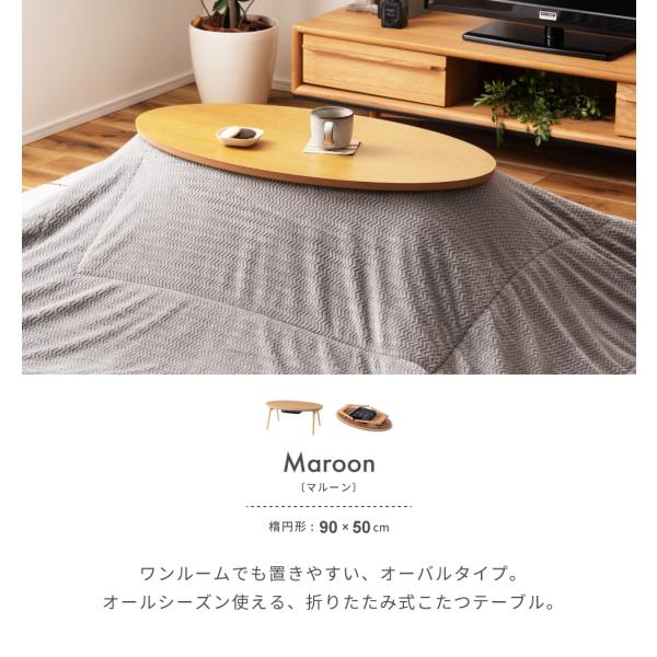 こたつテーブル おしゃれ 楕円形 丸型 90×50cm オーバル こたつ テーブル コタツ 折りたたみ 折れ脚 コンパクトスリム デスク 石英管ヒーター ナチュラル