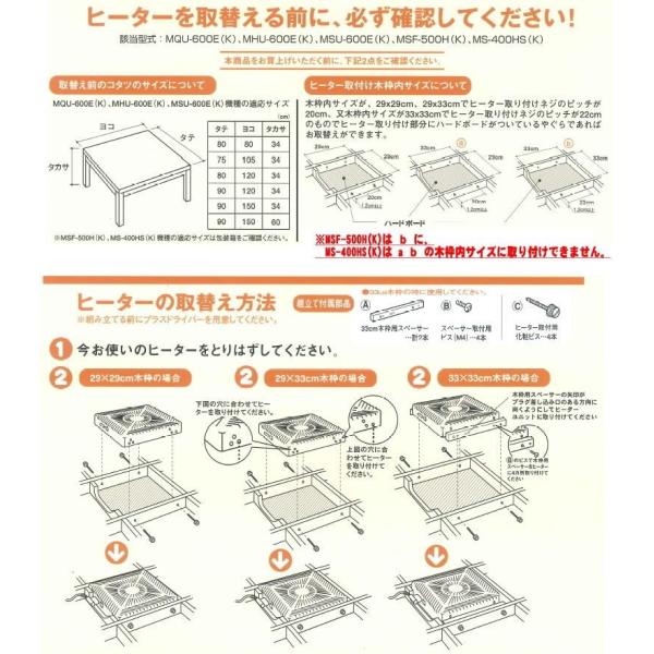 メトロ METRO こたつ用取替えヒーター MHU-601E(DKA) コタツ ユニット 600W 速暖 温風 ファン 薄型 交換用 手元