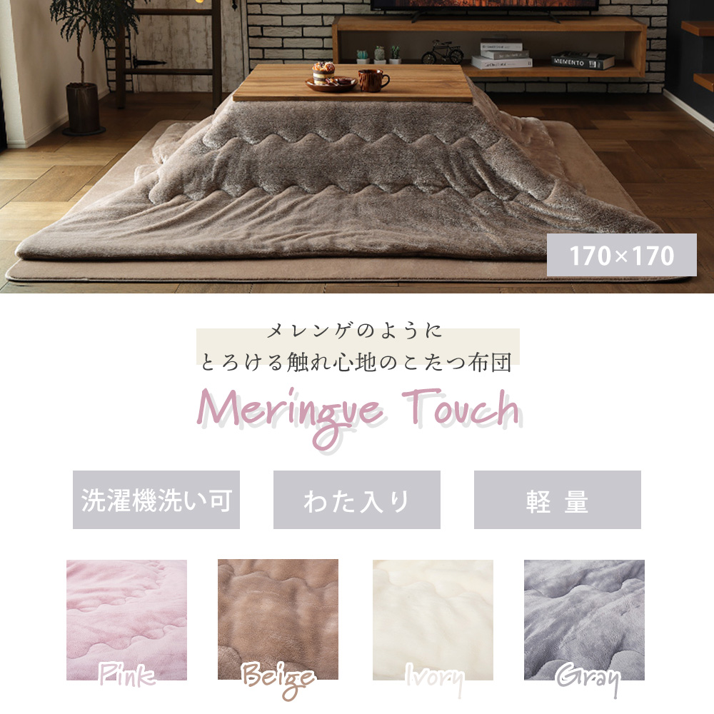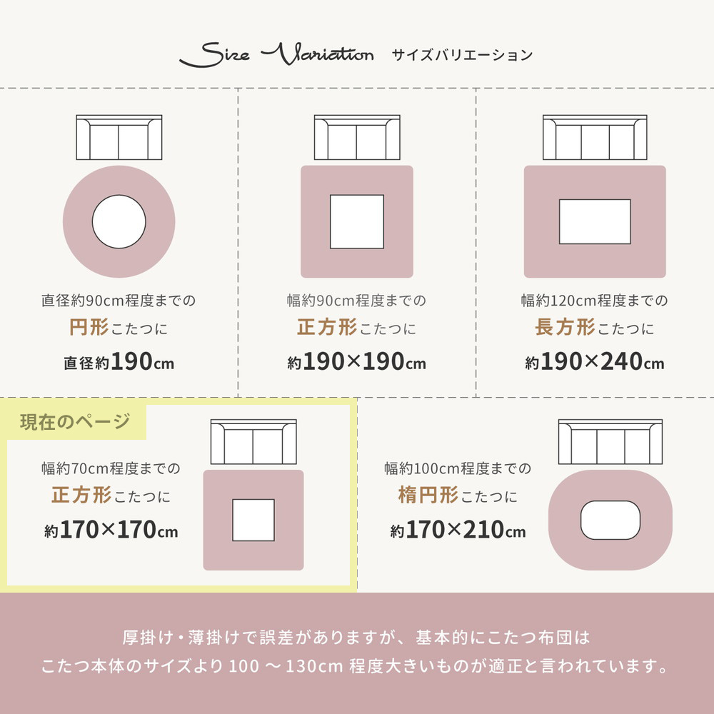 4/15はP+9%! こたつ布団 正方形 メレンゲタッチ コタツ 170×170 省スペース 洗える 洗濯 掛け布団 上掛け おしゃれ 無地 シンプル 寒さ対策 節電