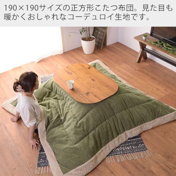 こたつ布団 布団 正方形 おしゃれ 190×190 シンプル コーデュロイ シープボア サンゴマイヤー 暖かい コンパクト 薄掛け こたつ 掛け