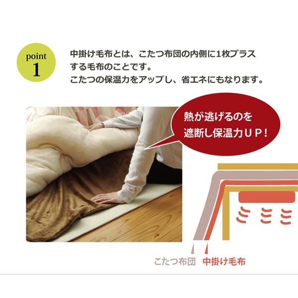 こたつ布団用 150 長方形用 中掛け毛布 フランネル フラリー ブラウン 約200×280cm ロータイプ用 あたたかい 毛布 寒さ対策 省エネ