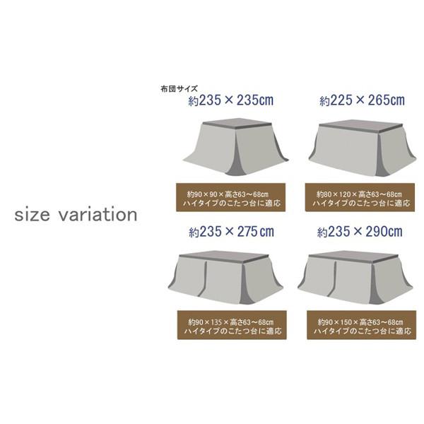 こたつ布団 正方形 90角 ハイタイプ こたつ布団 ダイニング 高脚用 おしゃれ ストライプ柄 カジュアル ジャガード織 フランネル あったかい 約235×235cm