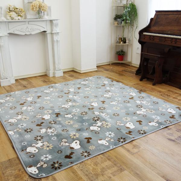 スヌーピー グレー 長方形 3帖用 センターラグ こたつ敷布団 190×240cm 柔らかく暖かい snoopy あったか