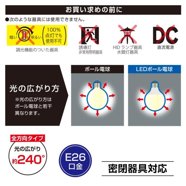 LED電球ボール電球形 E26 100形相当 G95昼光色|LDG11D AG6 06-5532|OHM(オーム電機)