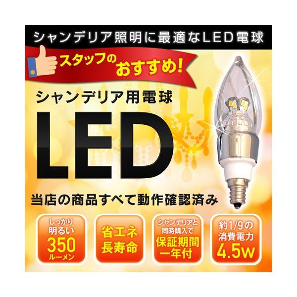 シャンデリア LED電球 12mm E12口金 4.5W(350 lm) クリアタイプ(電球色)シャンデリアLED電球 350ルーメン
