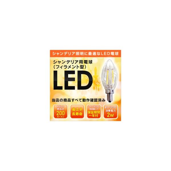 シャンデリア フィラメント LED電球 12mm E12口金 2W(200 lm) クリアタイプ(電球色)
