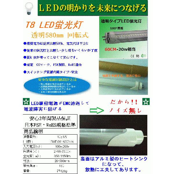 LED蛍光灯 直管20W形 10wグロー式はグローをはずすだけで点灯 LED蛍光灯20w型 LED蛍光灯20w形 タイプ消費電力10w 透明カバータイプ 3本以上送料無料