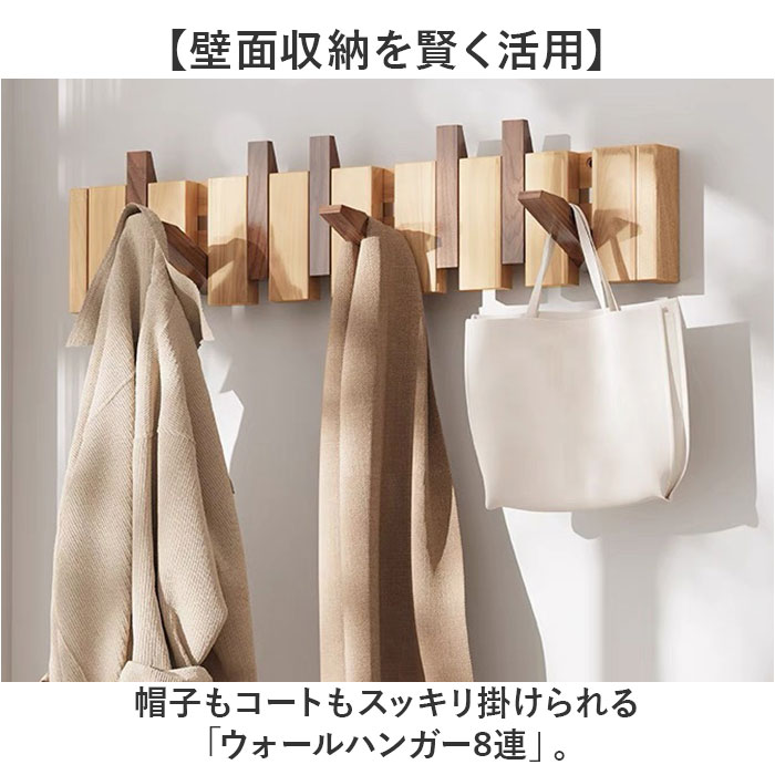 壁掛けフック おしゃれ 通販 8連 ハンガーラック 壁掛け フック ウォールハンガー 帽子掛け 洋服掛け コート掛け ウォールフック 収納 壁掛けフック