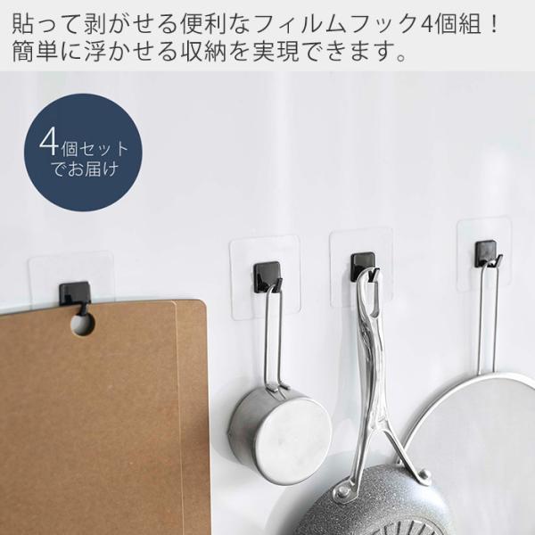 山崎実業 公式 タワー フィルムフック M 4個組 tower 4個セット 耐荷重3kg フライパン まな板 バスブラシ キッチンツール 5666 5667