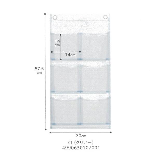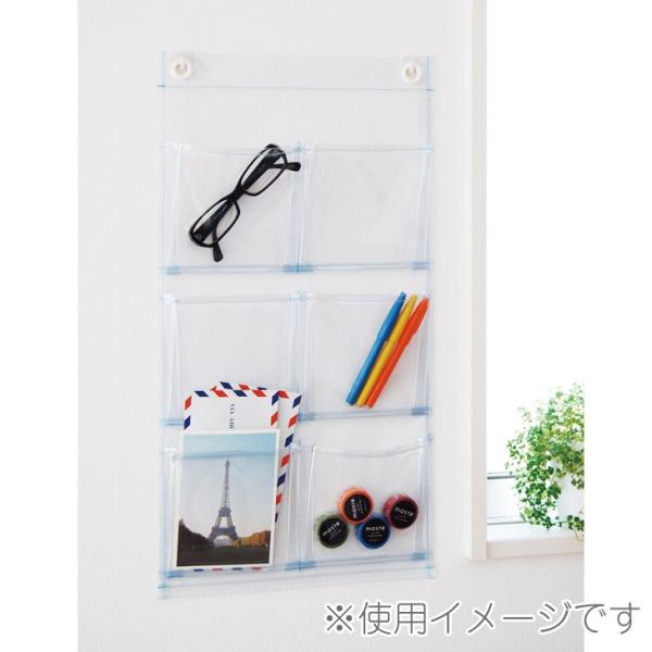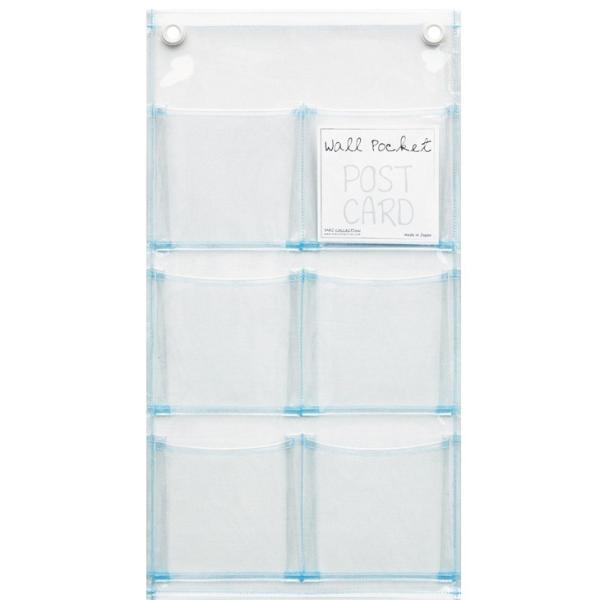 サキ SAKI ウォールポケット マチ付 ポストカード 6P クリア 透明 W-107CL 日本製 壁掛け 収納 おしゃれ 小物収納 3段 収納ポケット ビニール 6ポケット