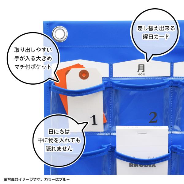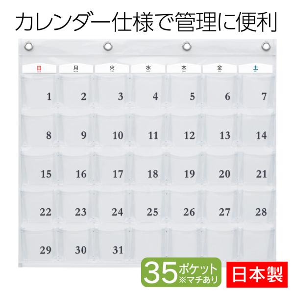 サキ カレンダーポケット M クリア W-416CL 日本製 ウォールポケット 大容量 マチ付 壁掛け収納 薬ポケット お薬カレンダー おくすりカレンダー 1カ月