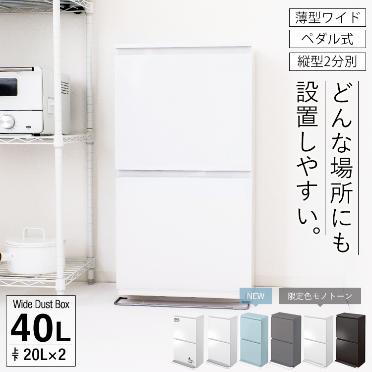 ゴミ箱 おしゃれ キッチン 分別 【限定カラー】 2段 ワイド 40リットル ペダル アスベル ASVEL 2分別 縦型 40L 大容量 蓋付き 資源ゴミ ごみ箱