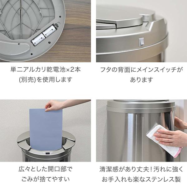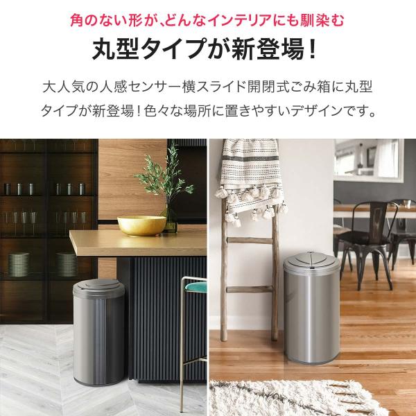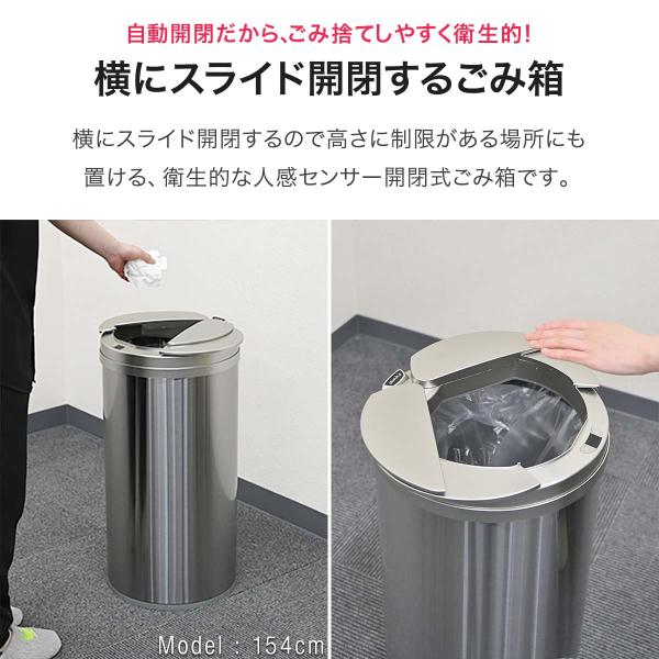 ゴミ箱 自動開閉 45リットル 47L センサー 横開き スライド開閉 ふた付き ステンレス スリム 丸型 センサー開閉 電動 ペダルいらず 1年保証 送料無料