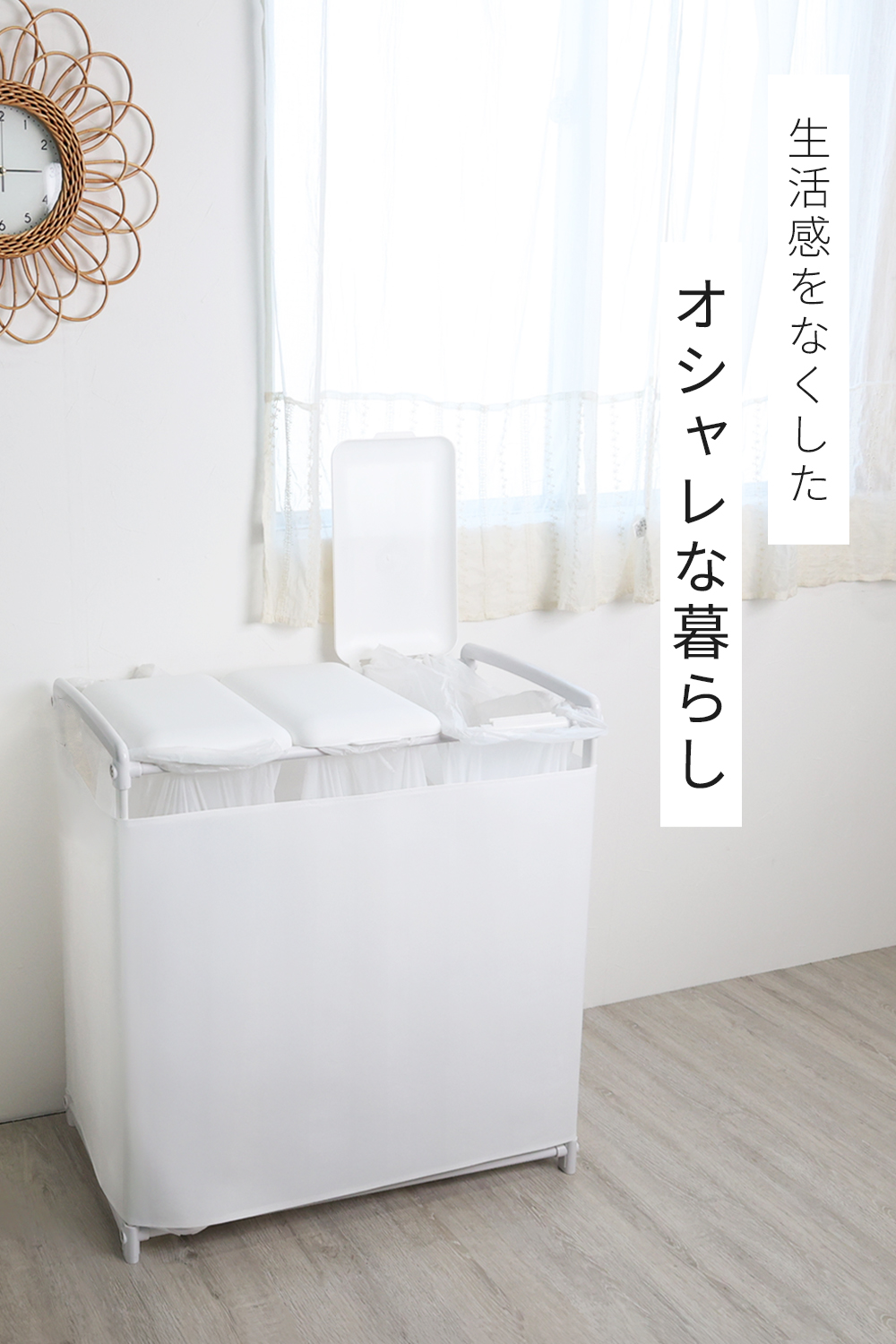 ゴミ箱 45リットル 分別 大容量 蓋つき 目隠し 3分別 手持ち袋 屋外 おしゃれ キャスター付き 目隠しカバー付き ベランダ キッチン 資源ごみ ゴミ レジ袋対応